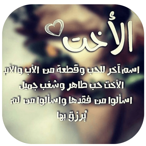 - أختك تقتحم الأهوال من أجلك هل تعرف ماذا يعني أن يكون لك أخت الأخت ضلع ونصف قلب الأخت بيت وحياة و روح ومهرب وملجأ شاطئ حب ونور وألهام وحياة للحياة إن انشغلت الأم فهناك أم ثانية هي الأخت.