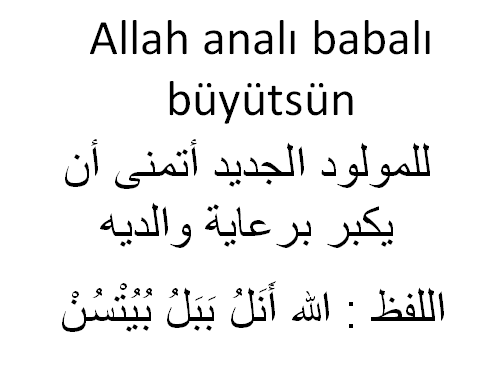 - Gözünüz aydın,analı babalı =تهنئة للمولود قرة عينكم يكبر مع ابويه -يعني تعيشون جميعا معا بلا فراق