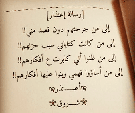 - أعتذر منك يا أغلى الأحباب على غيابي الذي طال وغلى تقصيري الذي صدر مني عن دون قصد.