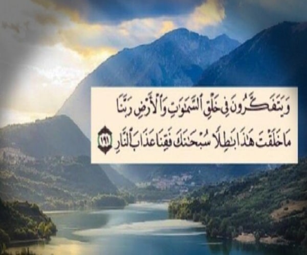 - التفكر في الكون وظواهره اليومية التي تحدث بشكل تلقائي وبنظام معين دون اختلاط أو تغيير، مثل سريان مياه الأنهار، تعاقب الليل والنهار، الأشجار المزدهرة والجبال الشاهقة، وغيرها من مظاهر الإبداع الإلهي في الكون.
