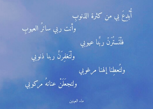 - كل الذنوب فغن الله يغفرها *** عن شبع المرء إخلاص وإيمان***وكل كسر فإن الله يجبره*** وما لكسر قناة الدين جبران.