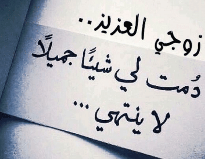 - زوجي أنت النظر لعيناي أنت النبض لقلبي أنت روحي أنت داءي ودواءي من غيرك أنت لا أكون أنا.