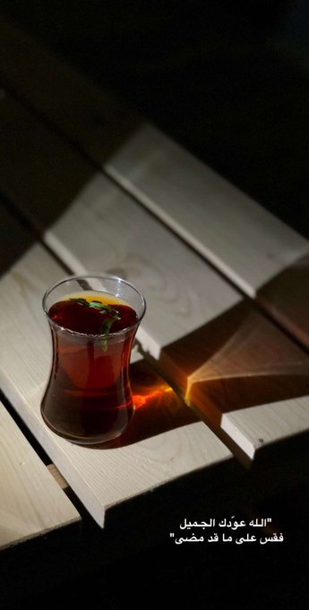 - الشاي ويكسو الوجوه حمرة ونعومة كأن بها وردا سقاه غمام