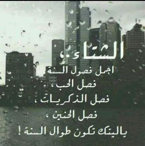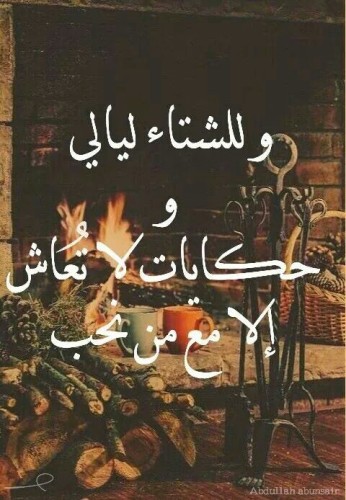 - أتى الشتاء يدب دبيبا ورعد الفرائص أصبح قريبا وحرقة الهوى في الشتاء نار هلا قدر العذاب حبيبا.غيم وساحب لمة حبايب واقراب الله عليك ي الشتاء لميت شمل الاصحاب.