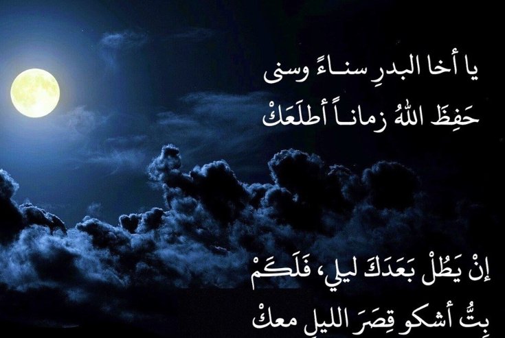 - يا الليل زينة السماء، وفي الليل يزدان القمر بأشكاله المختلفة، يعكس ضوء الشمس بخجل واضح، ويتلاشى تدريجياً تاركاً للنجوم مكانه.