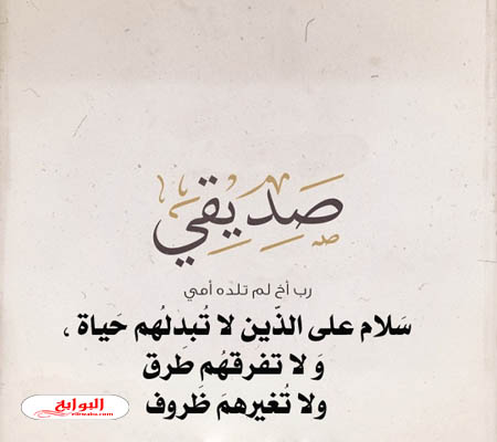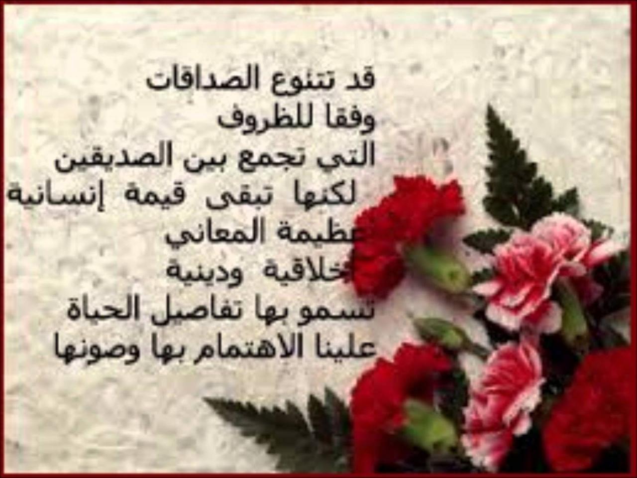 - أنت يا صديقي عندما طلبت منك العون، والمساعدة أتيت بكل ما عندك من قوة وحكمة لتساعدني وتنتشلني من مصيبتي، كيف لي أن أشكرك وأن أوفيك حقك؟ فلا شيء من الممكن أن يوفيك حقك، لكن أعدك أن أكون بجانبك كل العمر تحت أي ظرف، وأن أحبك في غيباك قبل حظورك، أتمنى من الله عز وجل أن يعطيك الصحة والعافية، شكراً لك على ما قدمته لي من أحاسيس نابعة من قلبك، وأدام الله عزك وأدام عطاءك.