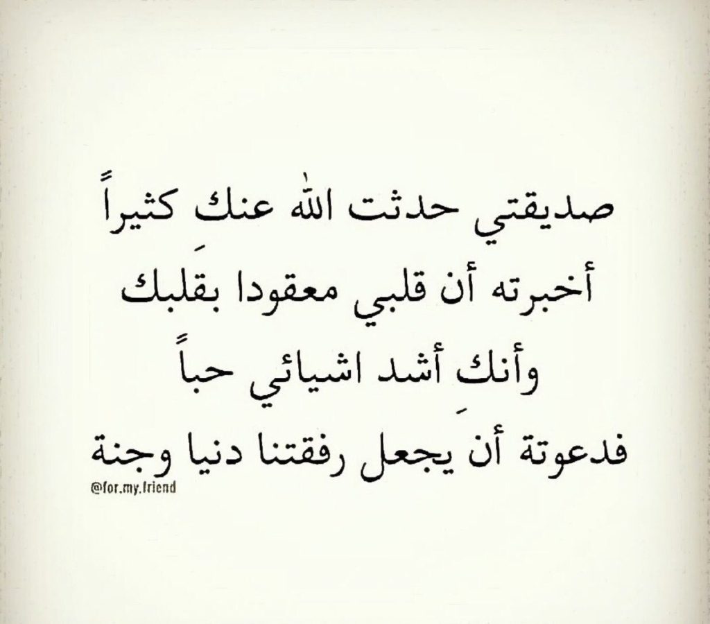 - أنت قطعة من قلبي ورفيقة روحي والجزء الجميل من عمري وإن قل الكلام أنت صديقتي التي لا تعوض ولا تستبدل صديقتي رأيت جمال الحياة في صحبتك شكرا لله عليك احبج عمري .