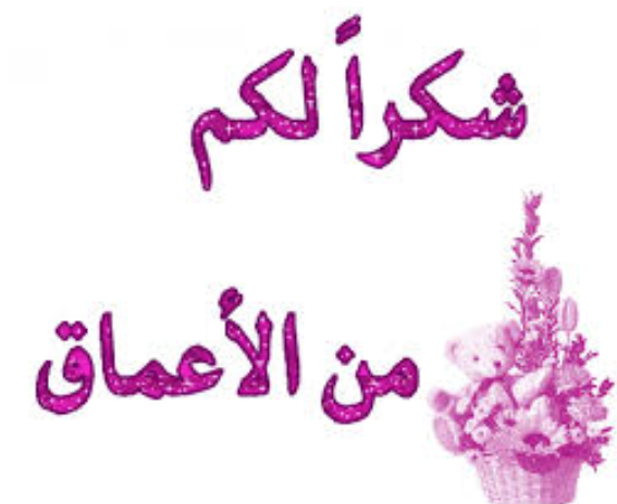 - لا شكر على واجب والحمد لله على السلامة وأسأل الله أن يجمعك بمن أحبك في الله تحت ظله يوم لا ظل إلا ظله وأن يزيد محبتك في قلوب من أحبك وأسأل الله أن تكون دائما بخير وسعاده ويحيطك بنوره الذي لا غالب له.