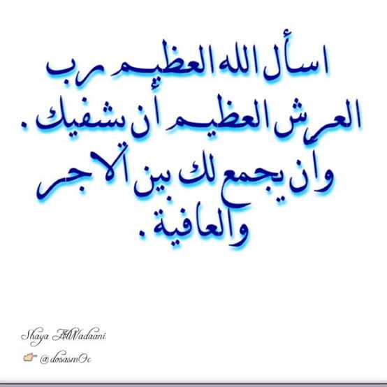 - عزيزي أسال الله العظيم رب العرش العظيم أن يشفيك من كل داء.