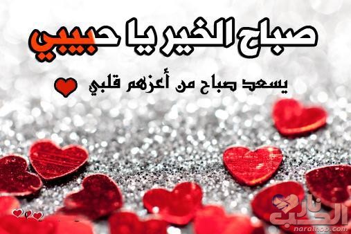 - صباح الخير يا زوجي الغالي فأنت أجمل شيء ينبض بقلبي كل ليلة.