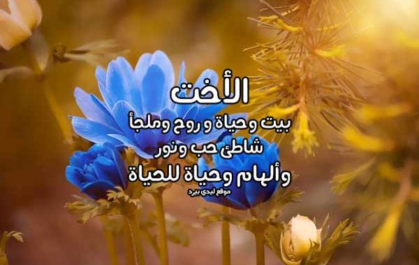 - أختي الغالية هي أجمل وردة في بستان حديقتي فلا تذبل وتبقى وردة كل عام، فهي بهجتي ومسرتي تُبعد الدمع عن مقلتي.