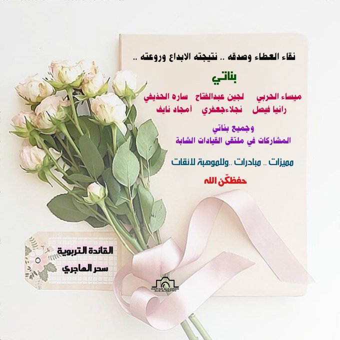 - يا من صاح الورد بشذاك وعطرت أركان مناك ونشكر ونهدي لك باقة من الامنيات والاماني، فبارك الله لك جهودك وحقق لك كل امنياتك في حياتك الدراسية.