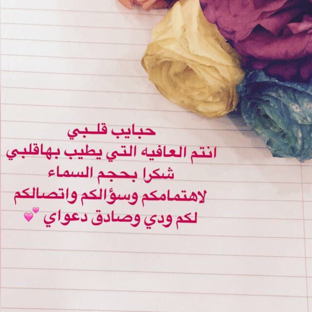 - شكرا لكـل من سأل عني أو توجه لله بالدعاء من أجلي وكل من خط حرفا للسؤال عنيووضع نقاطاً وجملاً شكرا لمن أرسل رسالة وكتب معاني وعبارات .
