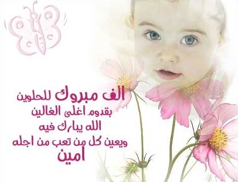 - جاءتك طفلة حلوة كالبدر وجهها يفوحُ عذوبة وطُهر وعيناها بريئتان كالفجر ونفسها صافية كالنهر تملأ الدنيا أفراحاً وبشر وتجعل الحياة حديقة من زهر بارك الله لكِ فيها ورزقها البر والصلاح.