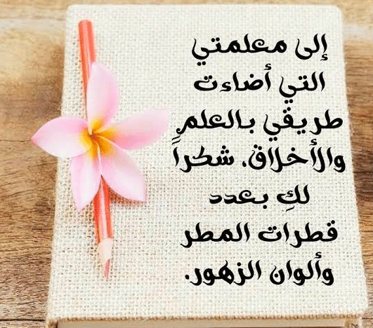 - أيها الأستاذ الفاضل أبعث لك من القلب باقات من الحب والشكر والثناء على العمل الجميل الذي قمت به طوال الفصل الدراسي.