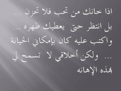 - إذا خانك من تحب فلا تحزن بل أنتظر حتى يعطيك ظهره، وأكتب عليه كان بأمكاني الخيانة ولكن أخلاقي لا تسمح لي بهذه الأهانة.