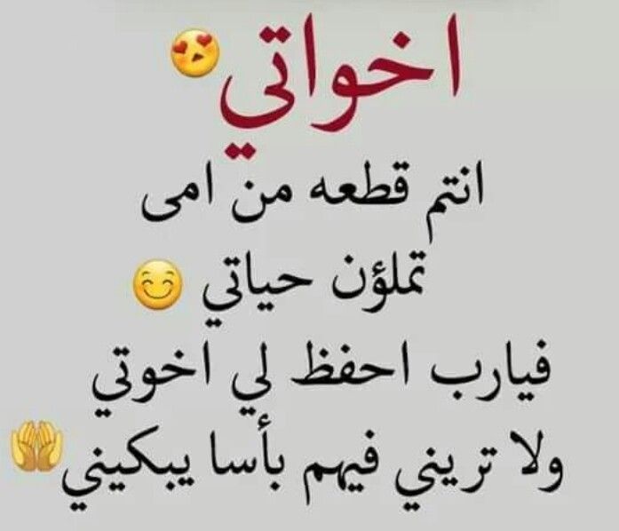 - عندما أتكلم عن أخواتي فأنا أتكلم عن جنة الدنيا هم أجمل عطايا ربي وهم سعادتي لا يكتمل جمال يومي إلا بوجودهم وسماع أصواتهم ربي احفظهم لي .