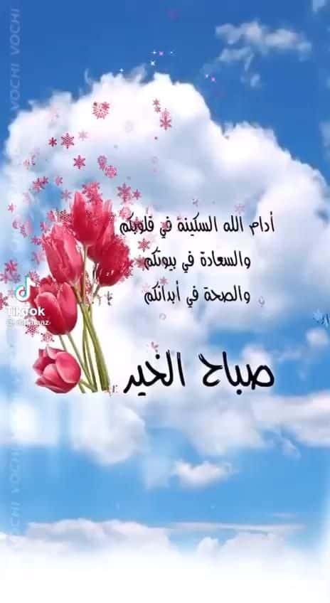 - صباح الخير يا حبيبي، أسأل الله تعالى أن تكوني في هذا الصباح بألف خير وأن تظلي في هذا الصباح بألف خير، كل صباح وأنت مضيئة بتقوى الله تعالى ونور الإيمان.