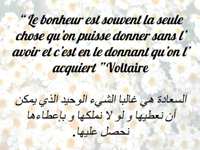 يُعتبر الإنسان مجموعة من المشاعر التي تتأثر بشكل كبير بالكلمات. فقد تثير فيه هذه الكلمات الحزن والألم، أو تدفعه نحو التفاؤل والسعادة، وتعيد إلى ذهنه ذكريات عن آلام أو معاناة عاشها. في هذه الفقرة، نقدم لكم عبارات جميلة باللغة الفرنسية مع ترجمتها إلى العربية، والتي تترك أثرًا عميقًا في النفوس.