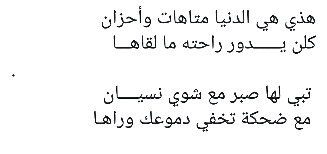- خلك معي لا تاخذك بعض الأفكار دنيا مضت لك لا تحسف عليها لا تشتكي لي من عنا الوقت لاجار أنا بعد دنياي بلشان فيها!! أرسم لك البسمة وأنا داخلي نار حتى السعادة بالخداع أشتريها.