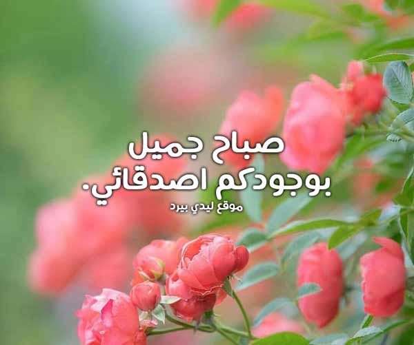 - صباح الخير للذين يمرون على القلب كنسيم الصباح صباح الخير للذين يصونون العشرة ولاينسون أن بيننا أياما لا تنسى وذكريات لا تحصى صباح الورد لمن يبعثون الأمل والسعادة فى قلوبنا صباح السعادة لكم أصدقائي.