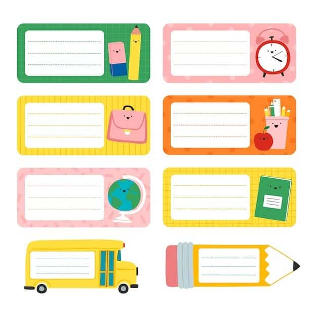 إليكم مجموعة من أجمل الملصقات التي تزين دفاتر المدرسة لعام 2025، لتساعد الطلاب على الاستعداد وتجهيز هذه الإضافات للمدرسة. هنا نقدم لكم بعض الملصقات المميزة لدفاتر المدرسة:
